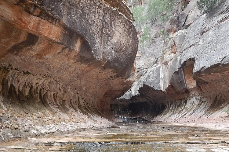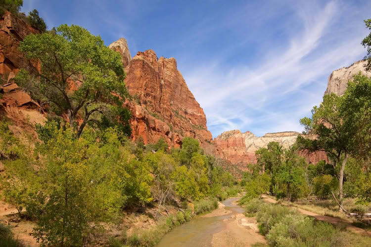 특히 더 내로우즈 지역은 ‘슬롯 캐년’ 형태로, 협곡 폭이 매우 좁고 양옆의 절벽이 가깝게 맞닿아 있습니다. 하늘이 가늘게 보이는 풍경은 자이언을 대표하는 장면입니다.