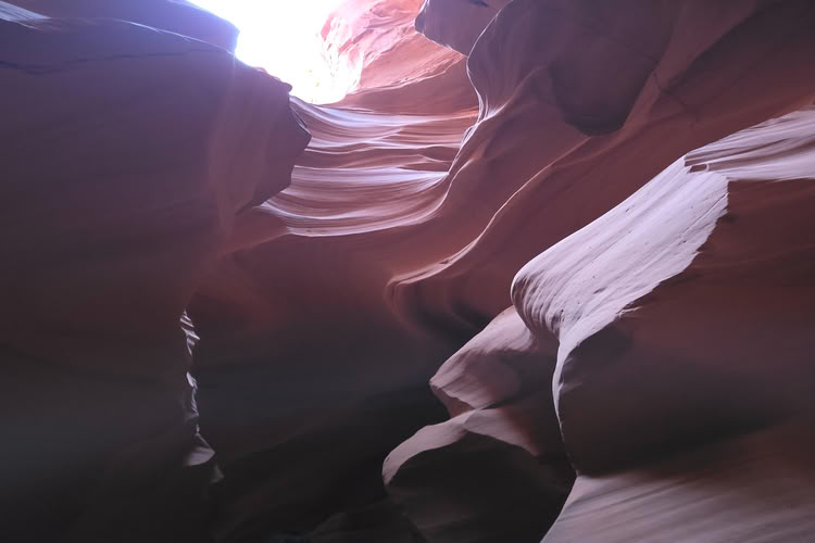 어퍼 엔탈로프 캐년은 엔탈로프 캐년이라는 이름을 전 세계에 알린 가장 대표적인 구간입니다. 협곡의 길이는 비교적 짧은 편이지만, 천장이 높고 위가 열려 있어 특정 시간대에 햇빛이 협곡 바닥까지 곧게 떨어지는 장면을 볼 수 있습니다. 흔히 사진에서 접하게 되는 빛기둥 장면이 바로 이곳에서 촬영됩니다.